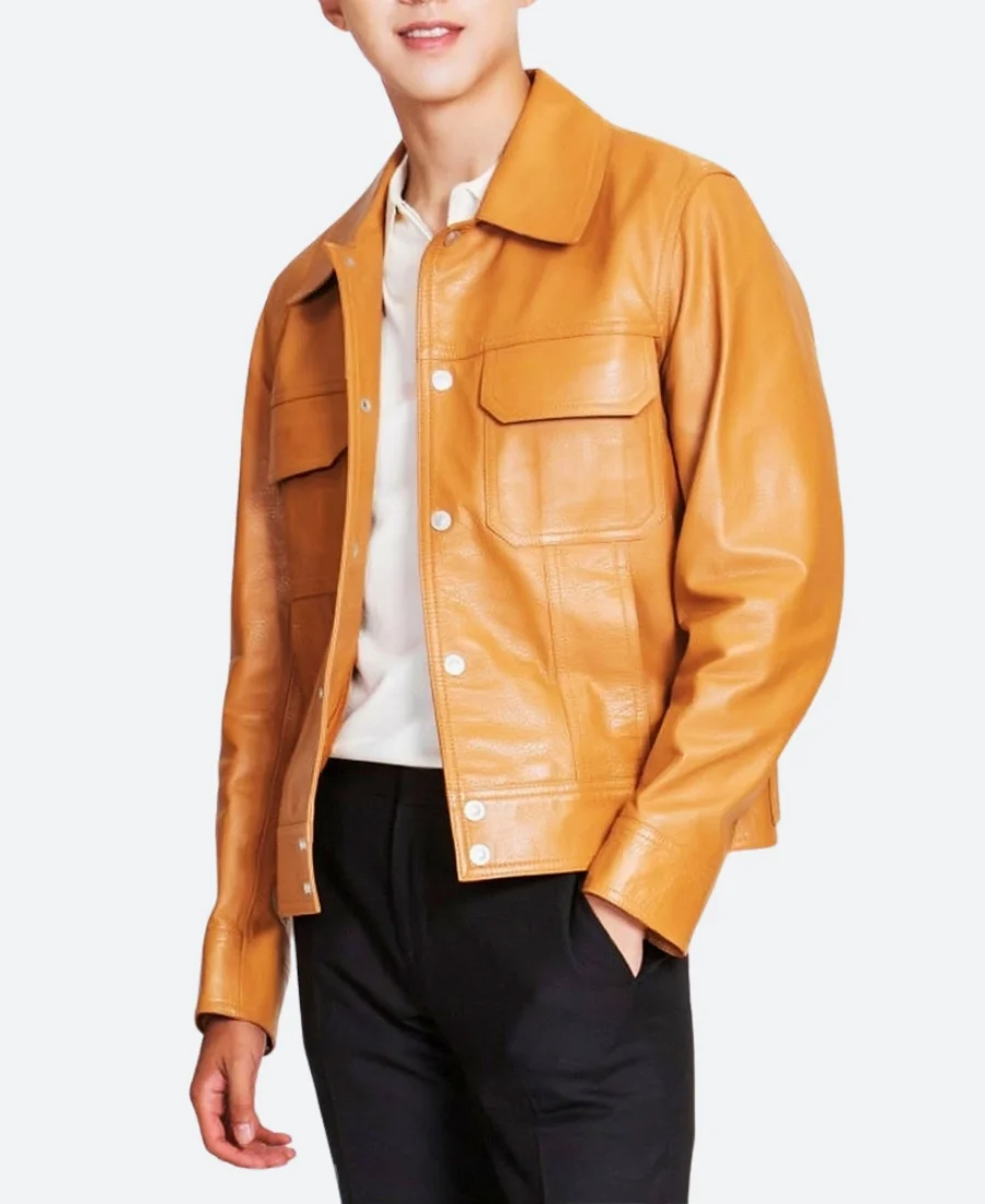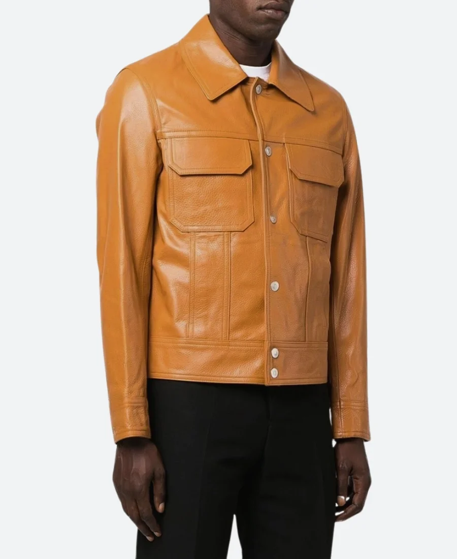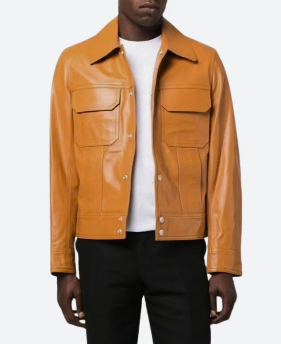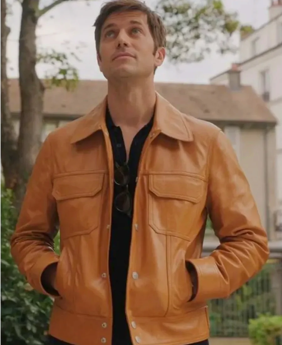 Lucas Bravo Emily in Paris Season 03 Gabriel Tan Brown Leather Jacket