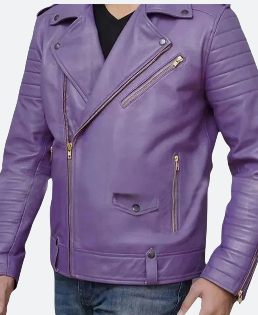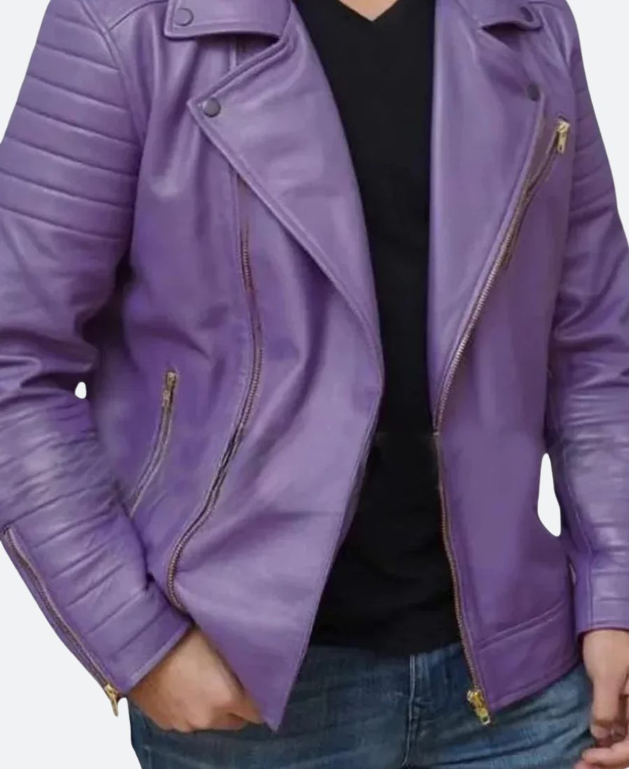 Jalen Hurts Purple Biker Leather Jacket