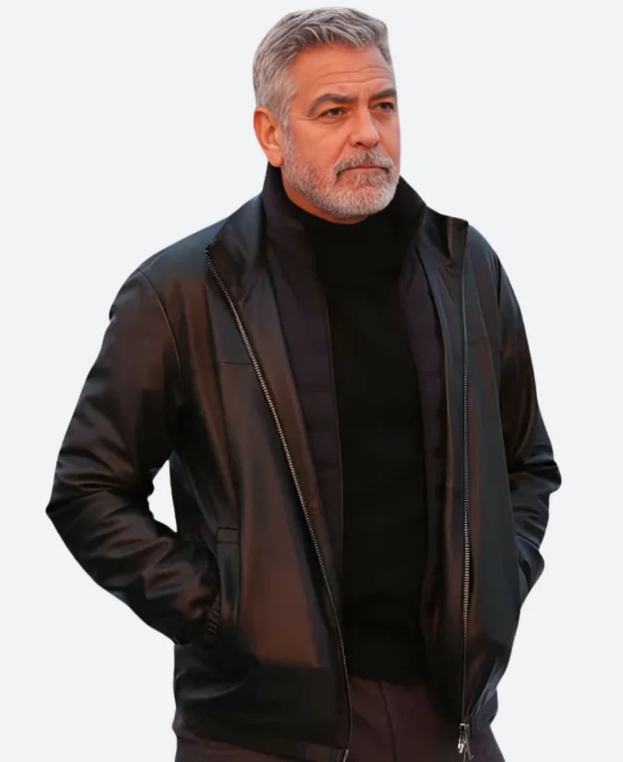 George Clooney Wolves 2024 Margaret’s Man Black Leather Jacket
